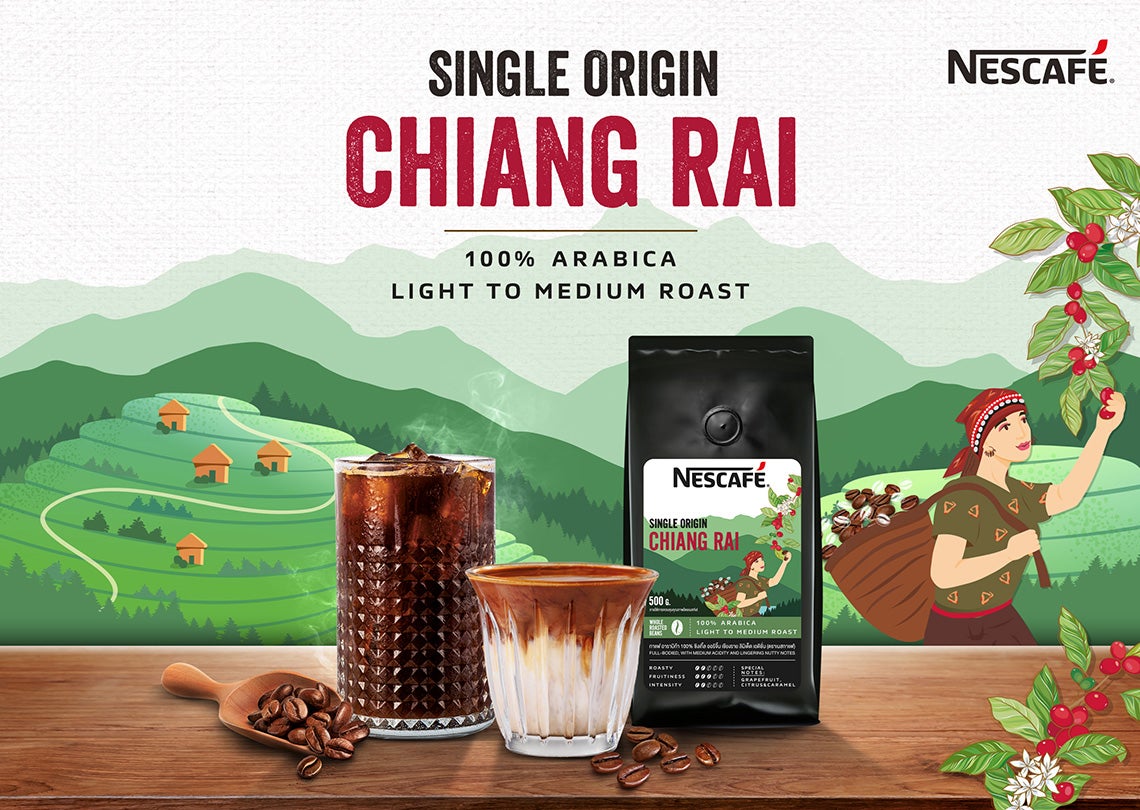 เนสกาแฟ ซิงเกิ้ล ออริจิ้น เชียงราย เมล็ดกาแฟ ลิมิเต็ดเอดิชั่น สายพันธุ์อาราบิก้า 100% ที่ผ่านกระบวนการผลิตต่าง ๆ ด้วยความรักและความตั้งใจในทุกขั้นตอน ส่งตรงจากเกษตรกรสู่คอกาแฟชาวไทย เพื่อฉลองแคมเปญ “NESCAFÉ Grow Together ปลูกอย่างยั่งยืน” ในวันกาแฟสากลปีนี้ เนสกาแฟ ซิงเกิ้ล ออริจิ้น เชียงราย เป็นผลผลิตแห่งความภาคภูมิใจของเกษตรกรไทย และเป็นผลจากการทำงานที่ดีเยี่ยม ภายใต้โครงการด้านความยั่งยืนระดับโลก เนสกาแฟ แพลน ตลอดหลายทศวรรษ เพื่อพัฒนาคุณภาพชีวิตที่ดีขึ้นให้กับเกษตรกรผู้ปลูกกาแฟ และสร้างสรรค์อนาคตที่ยั่งยืนให้กับวงการกาแฟไทย โดยใช้ความเชี่ยวชาญ ขนาดธุรกิจและการเข้าถึงผู้บริโภคอย่างครอบคลุมของเนสกาแฟ มายกระดับคุณภาพชีวิตและความเป็นอยู่ของเกษตรกรให้ดีขึ้น ทั้งมุ่งส่งเสริม ทฤษฎีเกษตรฟื้นฟู ซึ่งเป็นหัวใจหลักของเนสกาแฟ แพลน เพื่อขับเคลื่อนอุตสาหกรรมกาแฟให้เติบโตอย่างยั่งยืน ควบคู่การดูแลและฟื้นฟูสิ่งแวดล้อม