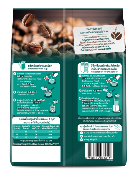 - เนสกาแฟ ไอซ์ เอสเปรสโซ โรสต์ กาแฟเย็น สูตรเข้มข้น เต็มรสเอสเปรสโซ ให้รสชาติเข้มข้นและกลิ่นหอมลงตัวในทุกแก้ว