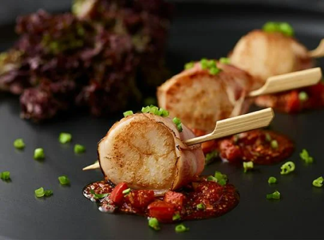 4จัดเสิร์ฟคู่กับหอยเชลล์พันเบค่อนย่าง และผักแกล้มตามชอบ