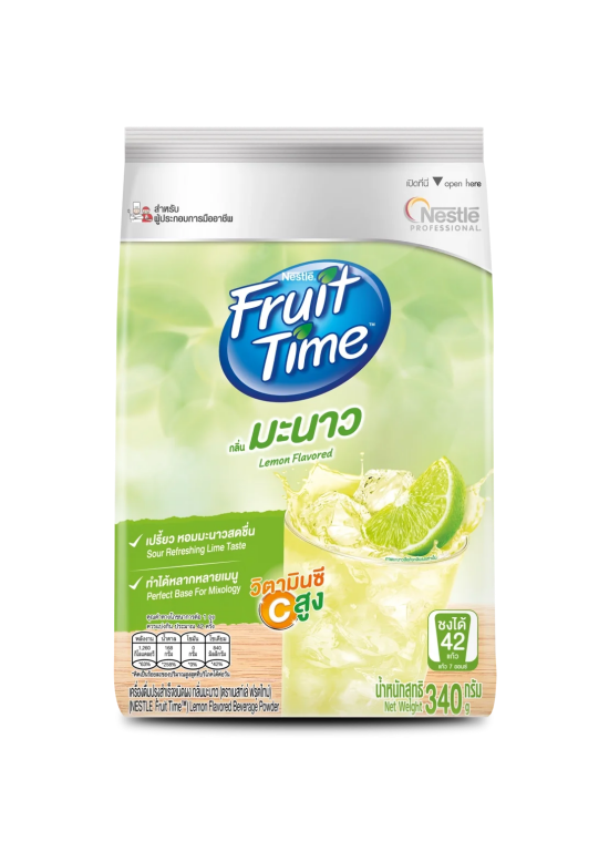 Nestle Professional ขอแนะนำ เนสท์เล่ ฟรุตไทม์ เลมอนเนด เครื่องดื่มรสมะนาวสำเร็จรูป เป็นเบสเครื่องดื่มใช้ชงได้หลากหลายเมนูอร่อย หอมสดชื่นจากกลิ่นมะนาว รสชาติเปรี้ยวโดนใจ มีวิตามินซีสูง สามารถนำไปต่อยอดเป็นเครื่องดื่มเย็นขายได้หลากหลายเมนู ชงง่ายอร่อยได้ทันทีเพียงแค่เติมน้ำ